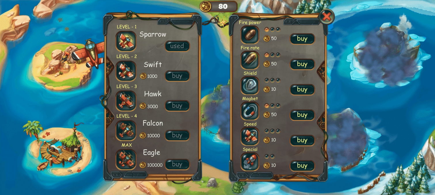 1. Advanced Hangar System: Players can use their earned coins to unlock and buy new, faster, and stronger fighter planes. This progression loop ensures users stay engaged for longer periods.