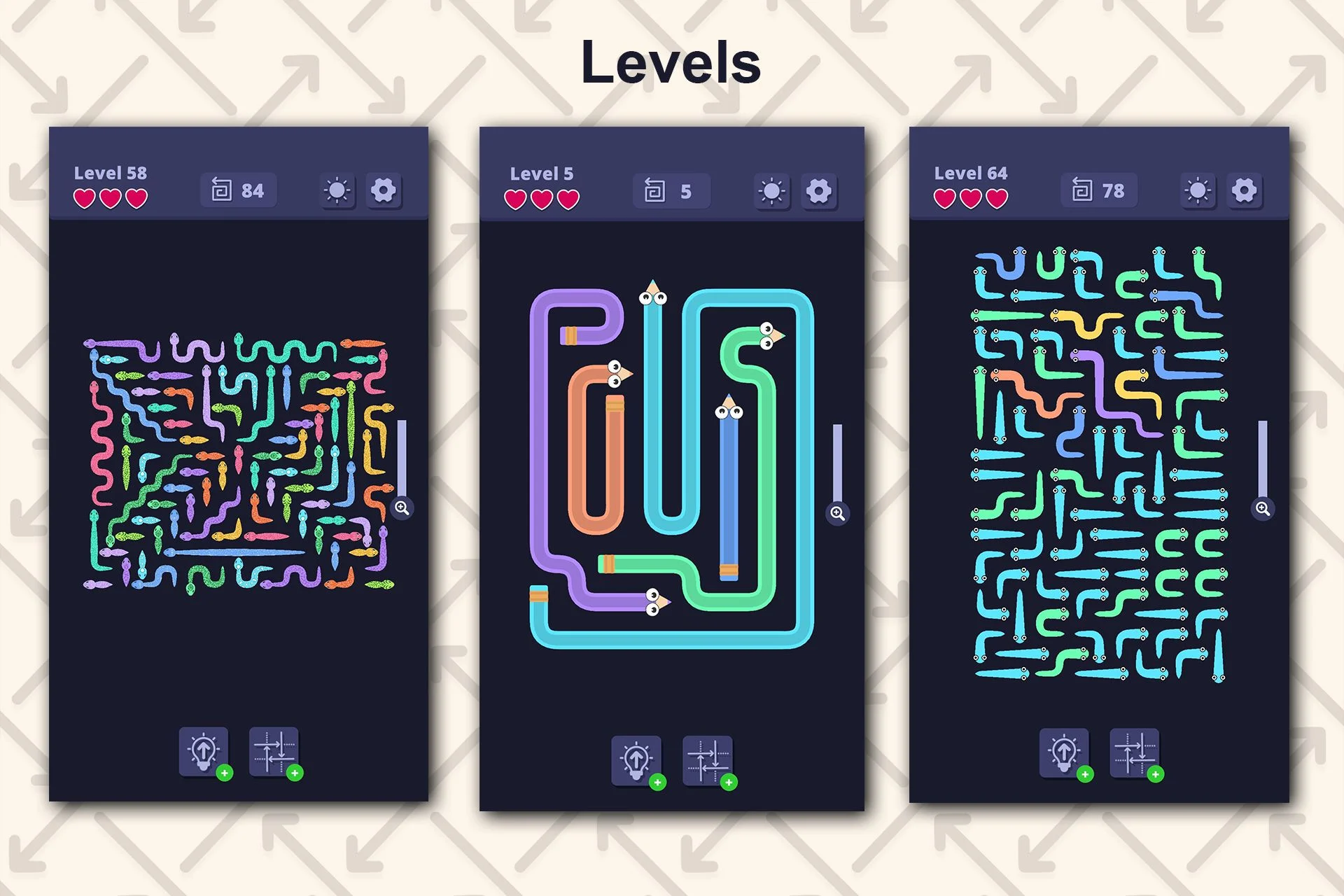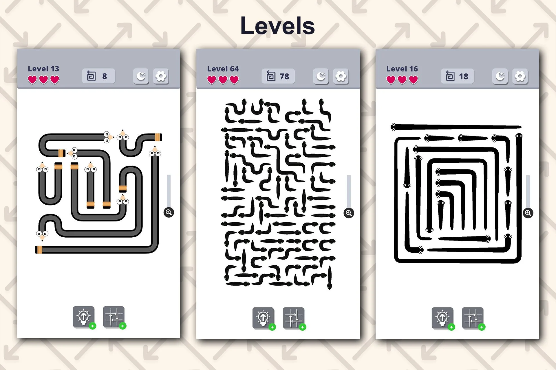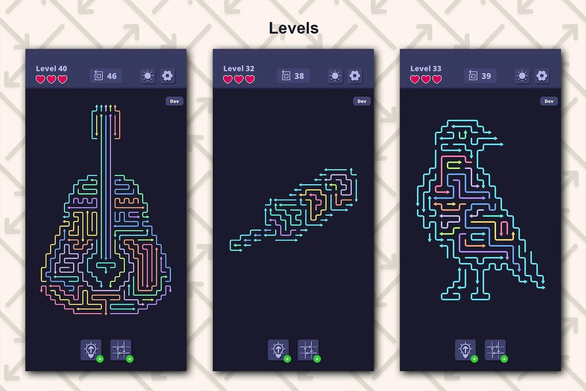 Key Features: • 600+ carefully designed levels • Multiple beautiful themes: Arrow (Default), Pencil, Snake_1, and Snake_2 • Built-in Level Editor with PNG Image to Level Generation – no coding required • Timer-based gameplay system • Life/heart system and expandable hint system • Easy theme switching and full reskin support • Clean, organized code and folder structure • Sound & feedback manager • Ready for Android and iOS publishing