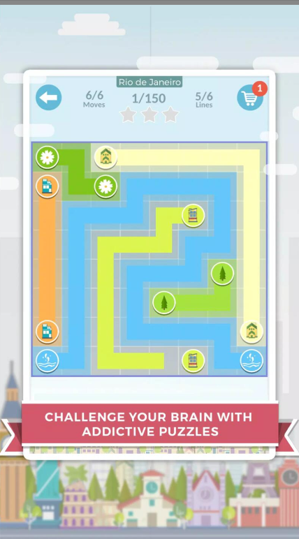 City Builder Link Puzzle is a relaxing yet challenging logic puzzle game where players build famous cities by connecting colored dots using lines. The rules are simple, but the puzzles become deeply strategic as difficulty increases. Link every dot of the same color with a single continuous line, without crossing other colored paths. When all dots are correctly connected, the city layout comes to life—revealing parks, rivers, buildings, and urban structures.