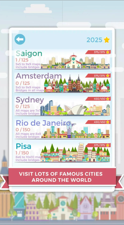 Travel around the world from Paris to New York, passing through cities like Hanoi, Saigon, Pisa, Moscow, and more. Solve thousands of puzzles, earn stars, unlock new cities, and prove you’re the best architect in the urban jungle.