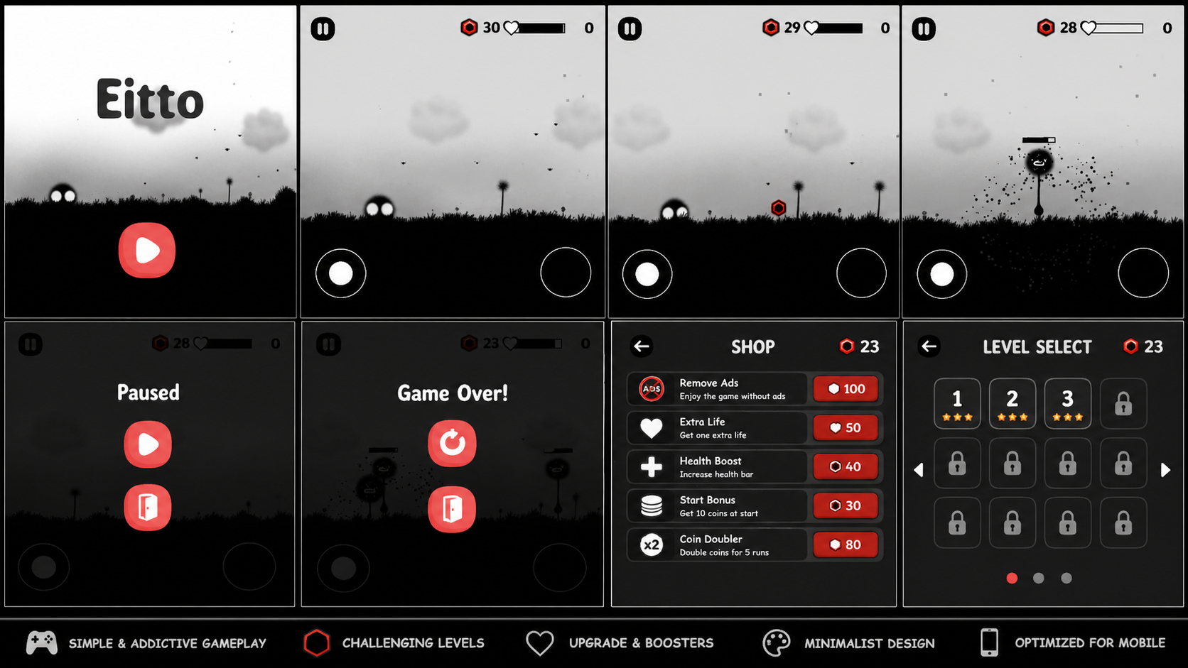 Eitto is a Complete Unity Game asset designed for developers and creative entrepreneurs looking to launch a polished, minimalist mobile game without starting from scratch. This comprehensive package provides the full source code for an addictive, endless-style game that is easy to customize and publish on major app stores. Its simple yet engaging mechanics make it a perfect fit for the hyper-casual gaming market, appealing to a broad audience seeking quick and entertaining experiences.