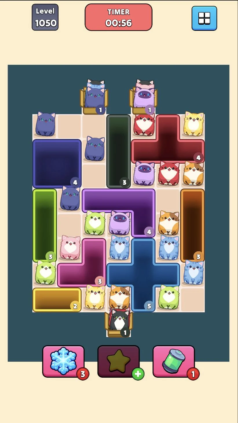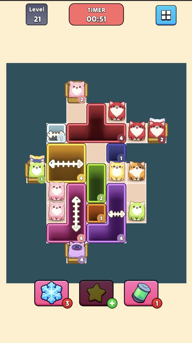 - Slide blocks freely & match cats strategically