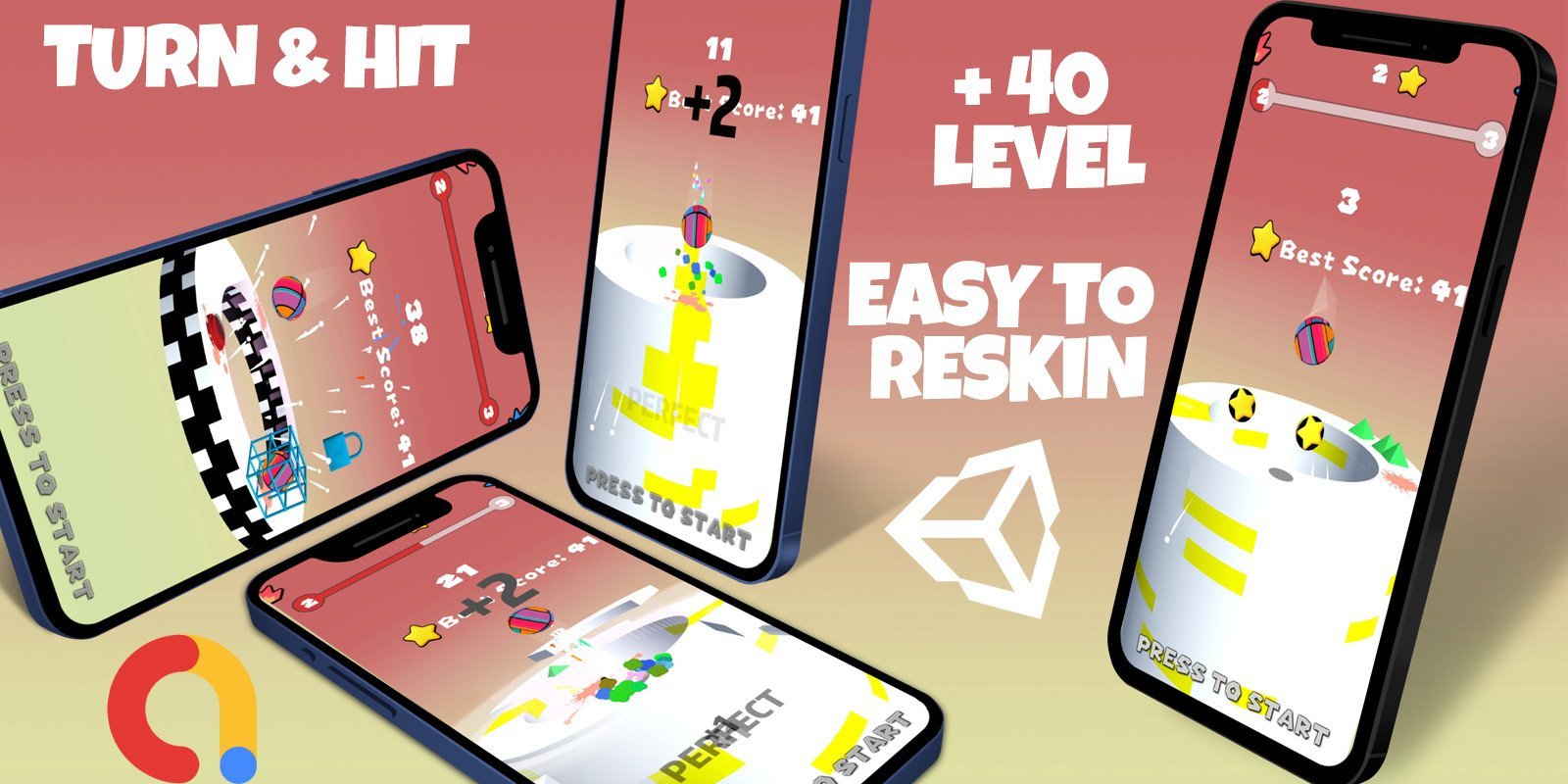 Turn & Hit is a fully developed Unity 3d Hyper casual mobile game, designed for quick deployment on the Google Play Store (Android) or the Apple App Store (iOS).
